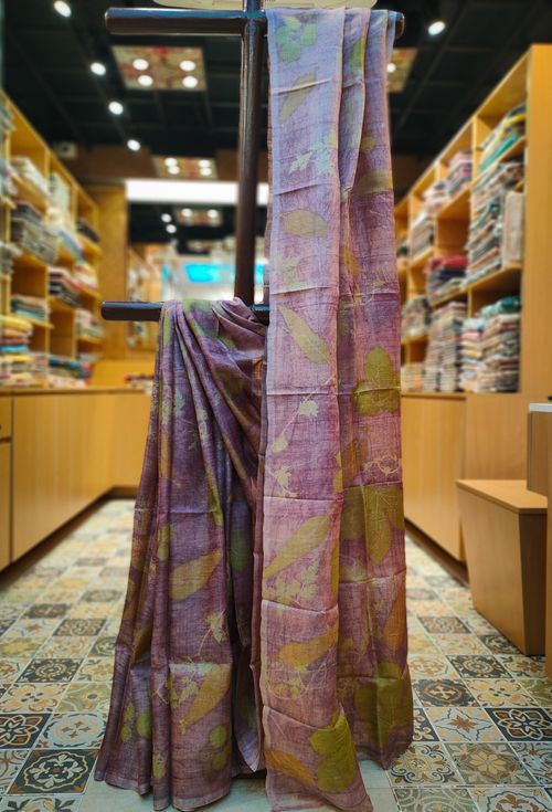 Lavender Colour Eco Saree With Leaf Motive In Whole Body