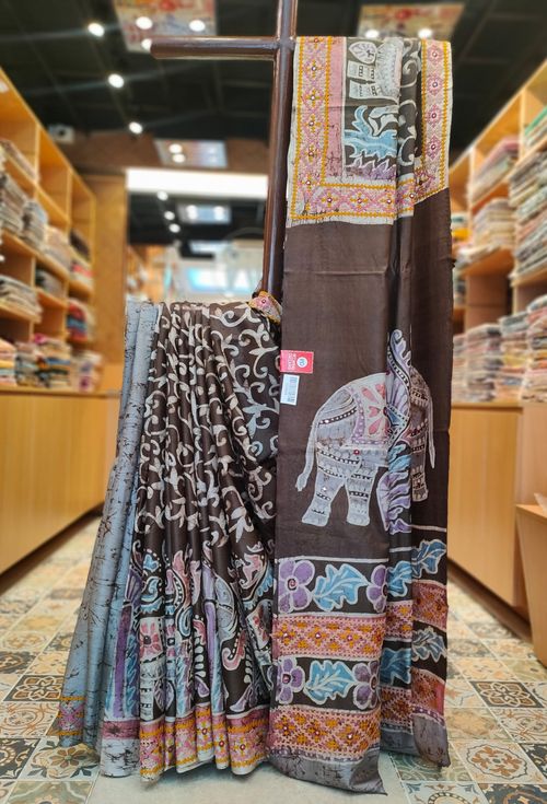 HAND BATIK ON TUSSAR WITH GUJRATI STITCH