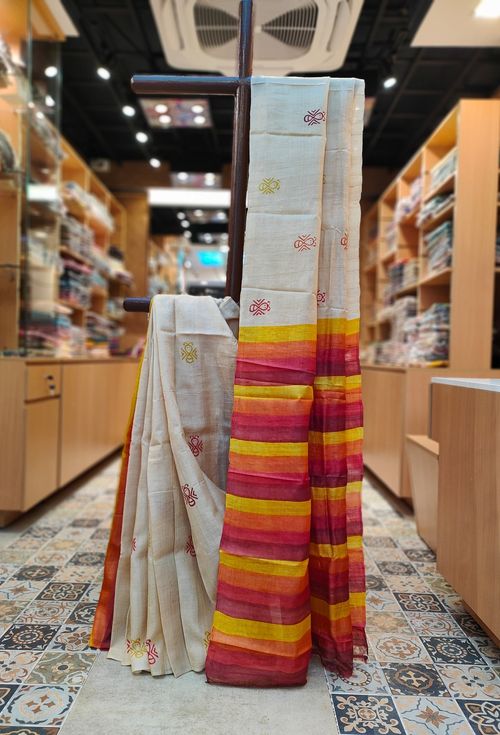 Off White Saree With Small Bees Block On Body And Contrast Anchaal