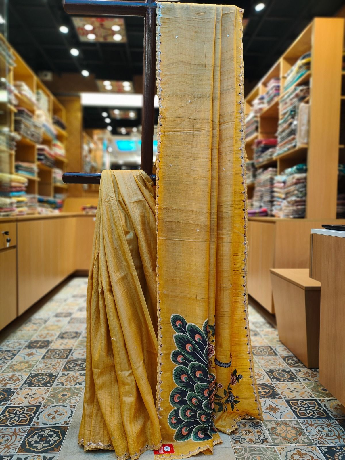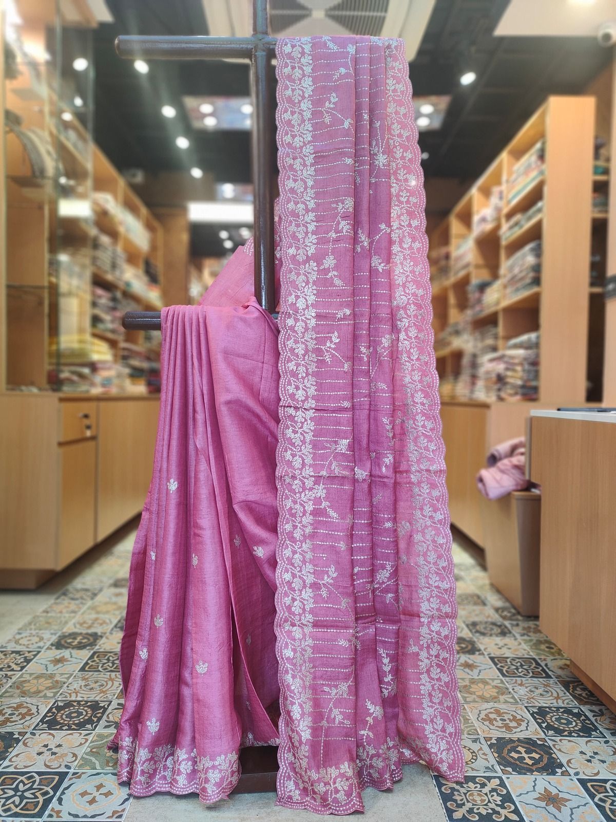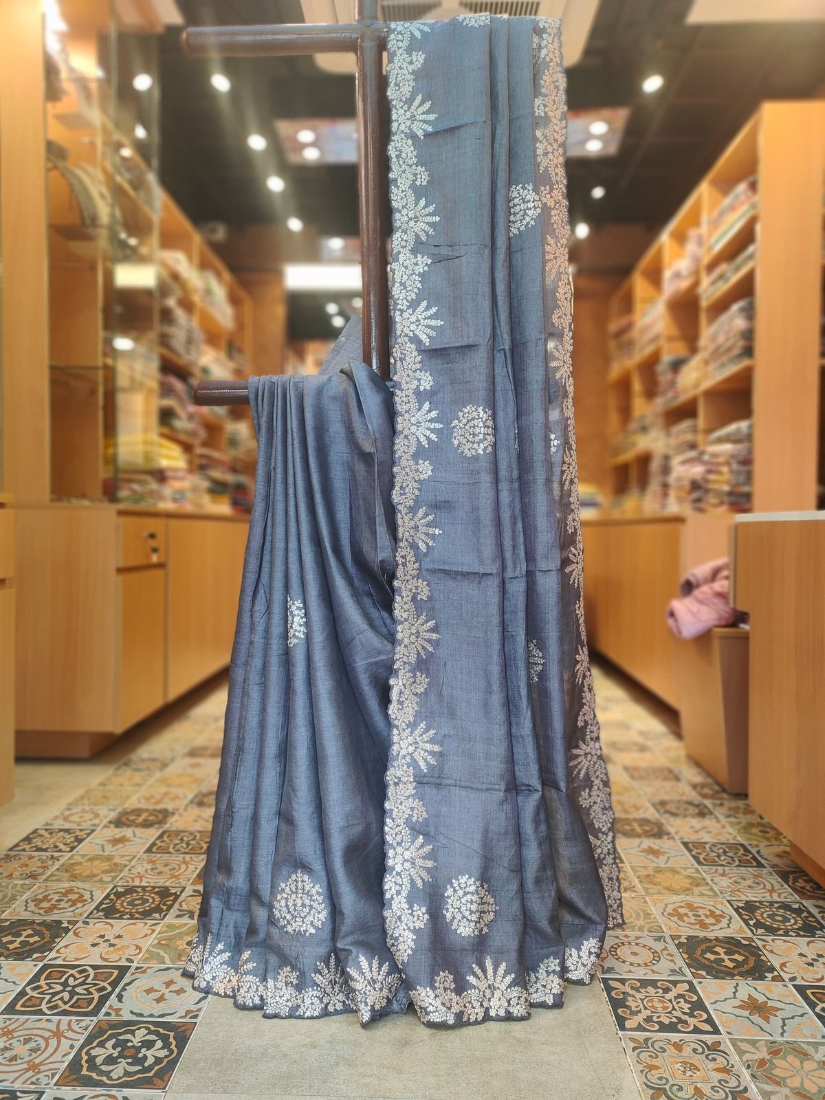 Machine Embroidary Tussar Saree