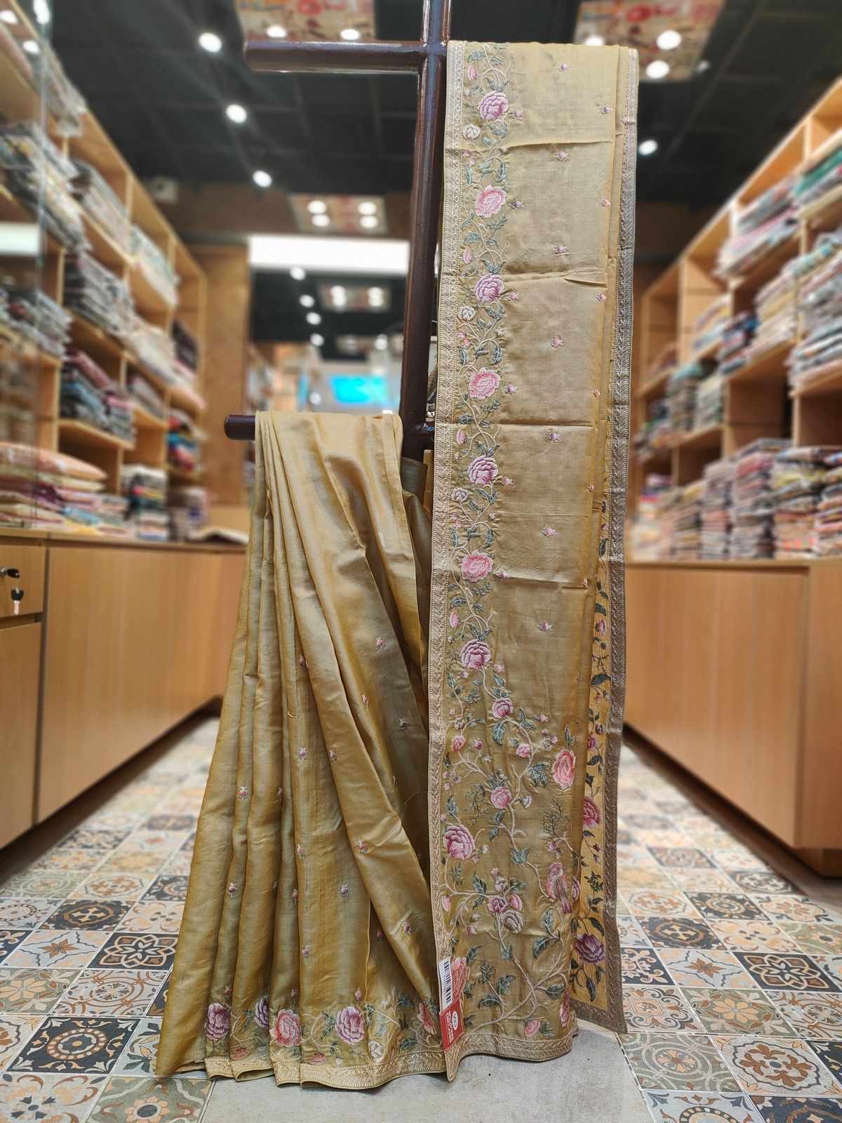 Hand Embroidery Tussar Saree
