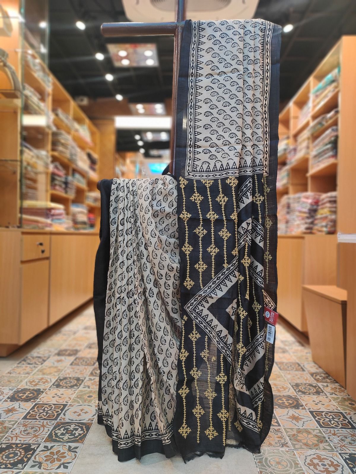 Block & Gujrati Stitch Tussar Saree